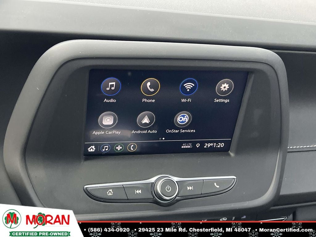 - Audio system, Chevrolet Infotainment 3 system, 7" diagonal color touchscreen, AM/FM stereo. Additional features for compatible phones include: Bluetooth® audio streaming for 2 active devices, voice command pass-through to phone, Apple CarPlay and Android Auto capable.