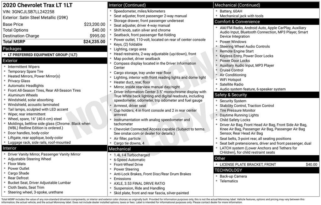 - Vehicle Name: Chevrolet Trax