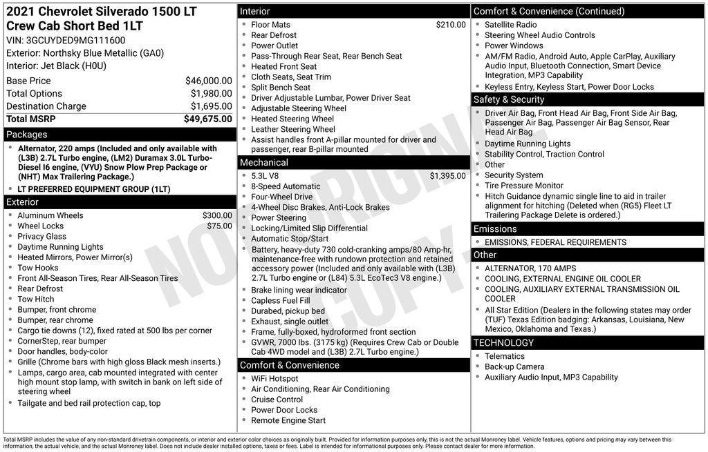 - Vehicle Name: Chevrolet Silverado 1500