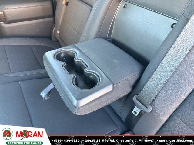 - Seat, Cloth Rear with Storage Package 60/40 folding bench for Crew Cab models, includes seatback storage on left and right side, center fold out armrest with 2 cupholders, (includes child seat top tether anchor)