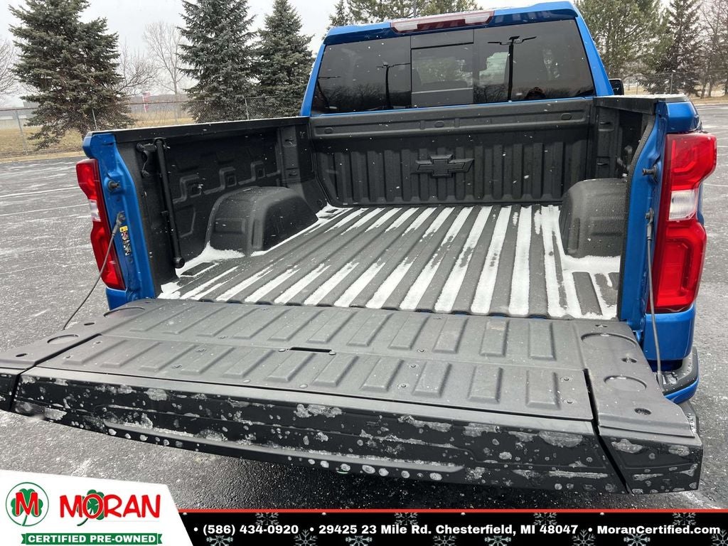10-Way Power Driver Seat w/Lumbar, 12.3 Multicolor Reconfigurable Digital Display, 4 Black Round Assist Steps (LPO), All-Star Edition, AM/FM radio: SiriusXM with 360L, Apple CarPlay/Android Auto, Auto-Locking Rear Differential, Automatic Emergency Braking, Bluetooth® For Phone, Chevrolet Connected Access Capable, Chevytec Spray-On Black Bedliner, Convenience Package, Convenience Package II, Dark Essentials Package (LPO), Deep-Tinted Glass, Dual Exhaust w/Polished Outlets, Dual-Zone Automatic Climate Control, Electric Rear-Window Defogger, Electrical Steering Column Lock, Electronic Cruise Control, Electronic Transmission Range Selector Shifter, EZ Lift Power Lock & Release Tailgate, Following Distance Indicator, Forward Collision Alert, Front Frame-Mounted Black Recovery Hooks, Front LED Fog Lamps, Front Pedestrian Braking, Fully automatic headlights, HD Rear Vision Camera, HD Surround Vision, Heated Driver & Front Outboard Passenger Seats, Heated Power-Adjustable Outside Mirrors, Heated Steering Wheel, Hitch Guidance w/Hitch View, Inside Rear-View Mirror w/Tilt, Integrated Trailer Brake Controller, IntelliBeam Automatic High Beam On/Off, Keyless Open & Start, Lane Keep Assist w/Lane Departure Warning, Leather Package, Leather Wrapped Steering Wheel, Leather-Appointed Front Seat Trim, LED Cargo Area Lighting, Multi-Flex Tailgate, OnStar & Chevrolet Connected Services Capable, Perimeter Lighting, Power Sliding Rear Window w/Rear Defogger, Power Sunroof, Preferred Equipment Group 1SP, Premium audio system: Chevrolet Infotainment 3 Premium, Premium Bose 7-Speaker Sound System, Protection Package, Rear 60/40 Folding Bench Seat (Folds Up), Rear Cross Traffic Alert-Braking, Rear Park Assist, Rear Pedestrian Detection, Rear Wheelhouse Liners, Remote keyless entry, Remote Vehicle Starter System, Safety Package, SiriusXM w/360L, Standard Suspension Package, Theft Deterrent System (Unauthorized Entry), Trailer Camera Provisions, Trailer Side Blind Zone Alert, Trailering App, Trailering Package, Universal Home Remote, Up-Level Rear Seat w/Storage Package, Wheels: 22 Transit Steel (LPO), Wi-Fi Hot Spot Capable, Wireless Charging, Wireless Phone Projection.