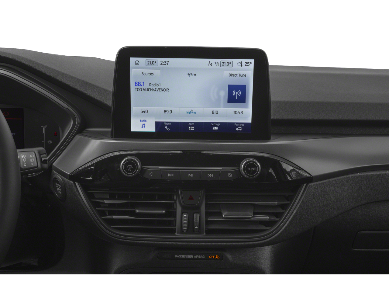AM/FM radio: SiriusXM, Auto High-beam Headlights, Automatic temperature control, Emergency communication system: SYNC 4 911 Assist, Front dual zone A/C, Fully automatic headlights, Illuminated entry, Rear-View Camera, Remote keyless entry, SYNC 4, Unique Cloth Front Bucket Seats, Wheels: 17 Shadow Silver-Painted Aluminum.